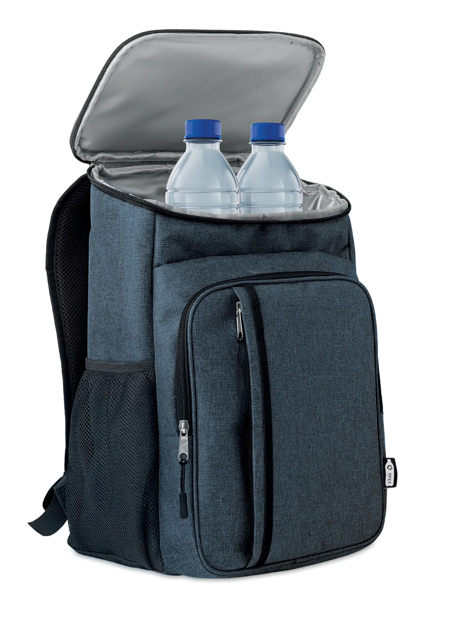Практична раница за пикник с термоизолация, изработена от 600D RPET материя. Включва комплект за двама души с чинии, чаши, вилици, лъжици и ножове от неръждаема стомана. Чиниите, чашите и приборите са изработени от полипропилен, което ги прави здрави и преизползваеми. Презрамките са регулируеми и удобни. Раницата е идеална за пикници и къмпинг.