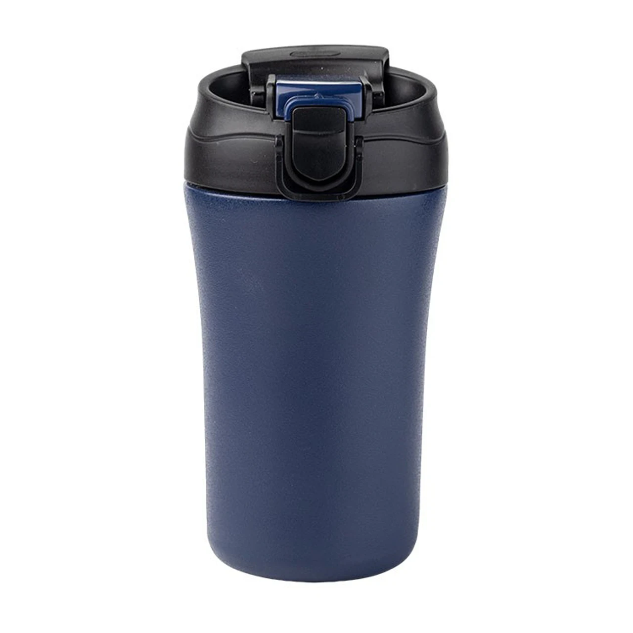 Термочаша от неръждаема стомана с двустенна изолация, която поддържа напитките топли или студени за дълго време. Капакът е снабден с бутон за лесно отваряне, заключващ механизъм и предлага два начина на употреба – сгъваема сламка или отвор за пиене. Компактният размер и удобната форма я правят практичен избор за път, офис или ежедневие.