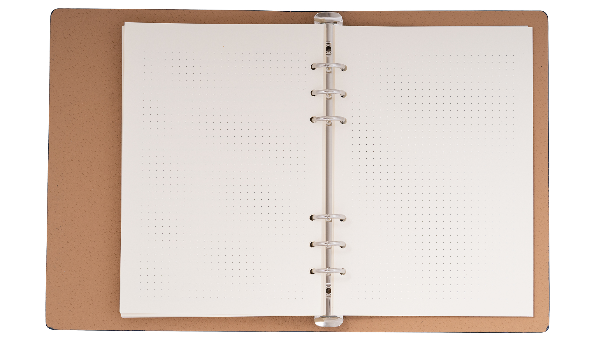 Стилен бележник-органайзер, формат A5 със спирала и твърди корици от ЕКО кожа. Тялото на бележника е съставено от календар и 200 броя тонирани страници на редове и точки