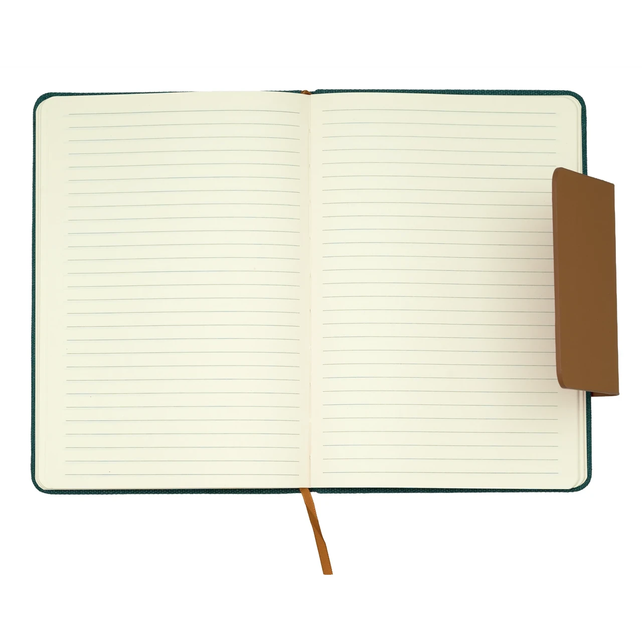 Луксозен бележник A5, с корица от рециклиран плат и кожено капаче с отделение за карти и магнитно закопчаване.