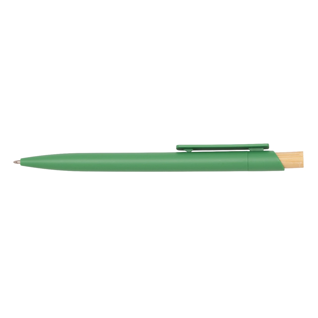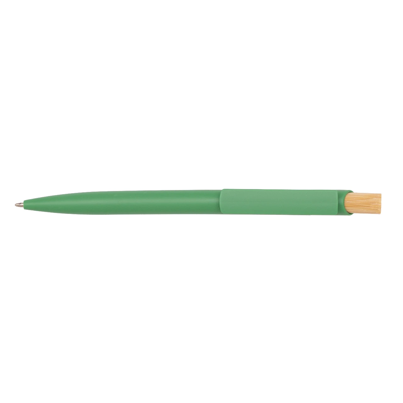 Пластмасова химикалка с широк прав клипс и бамбуков бутон.