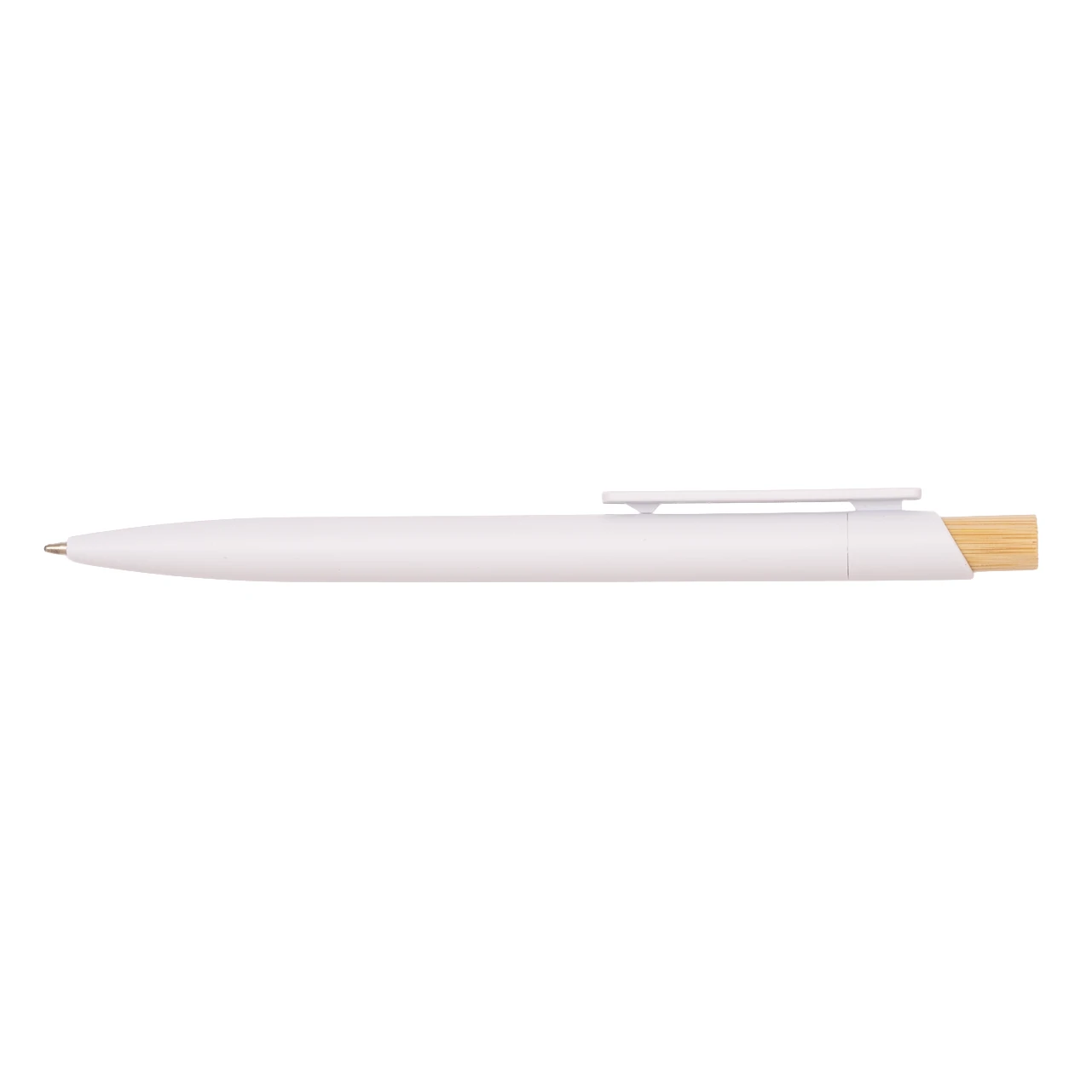 Пластмасова химикалка с широк прав клипс и бамбуков бутон.