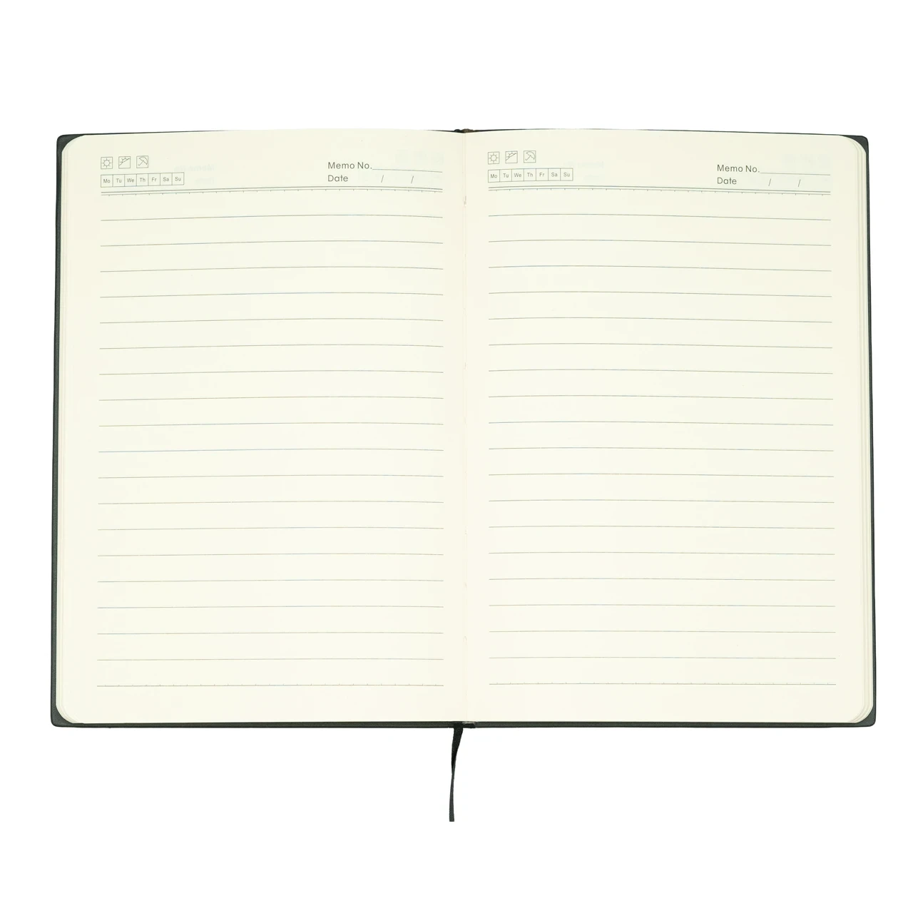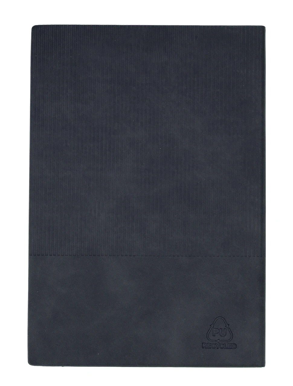 Бележник A5 с меки корици от рециклирана термо еко кожа. Съдържа 160 тонирани страници на редове.