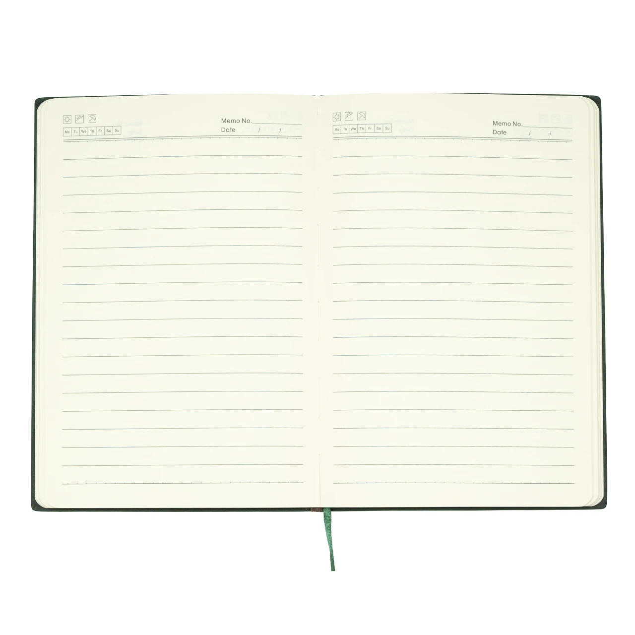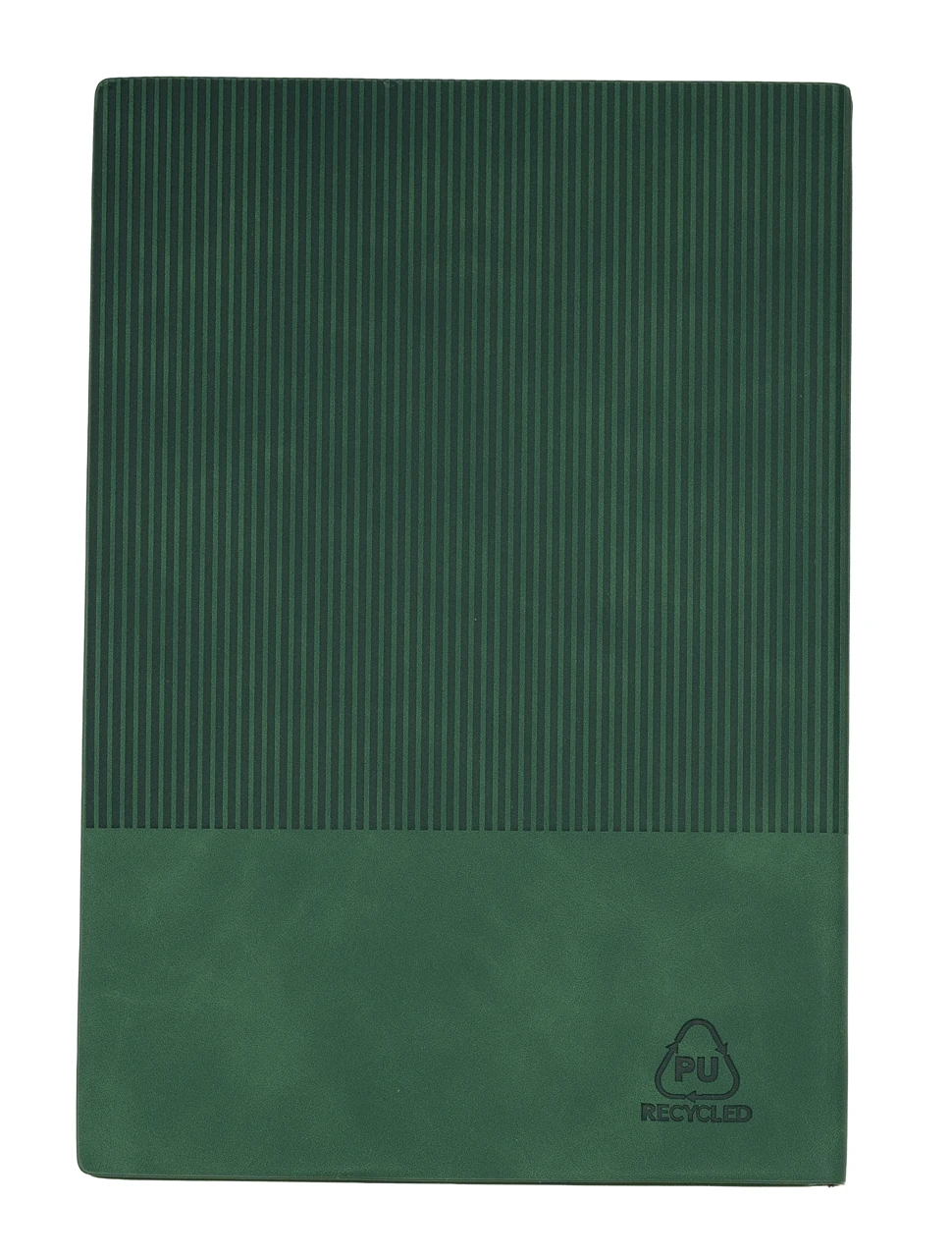 Бележник A5 с меки корици от рециклирана термо еко кожа. Съдържа 160 тонирани страници на редове.