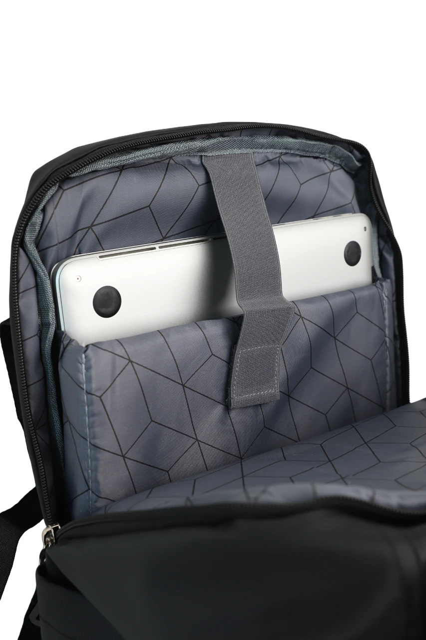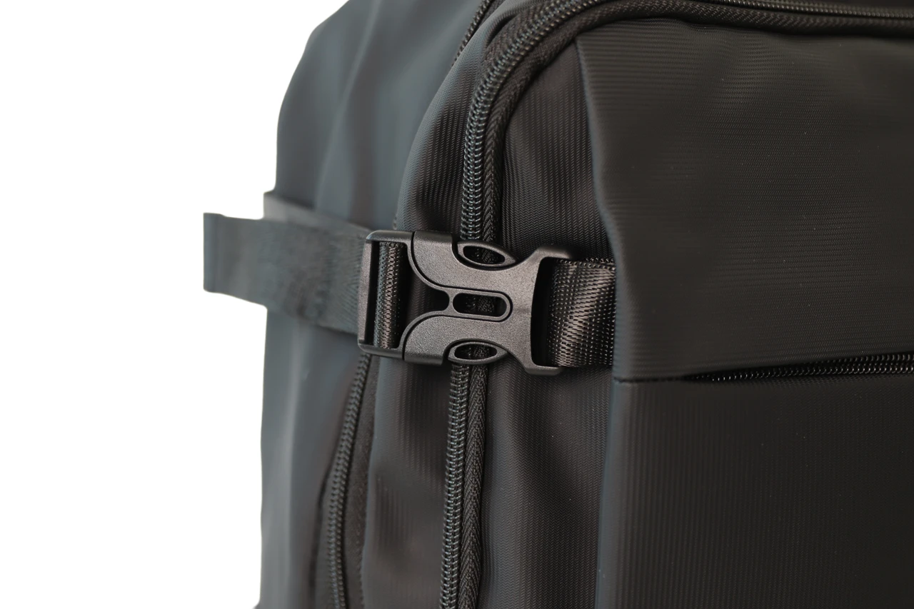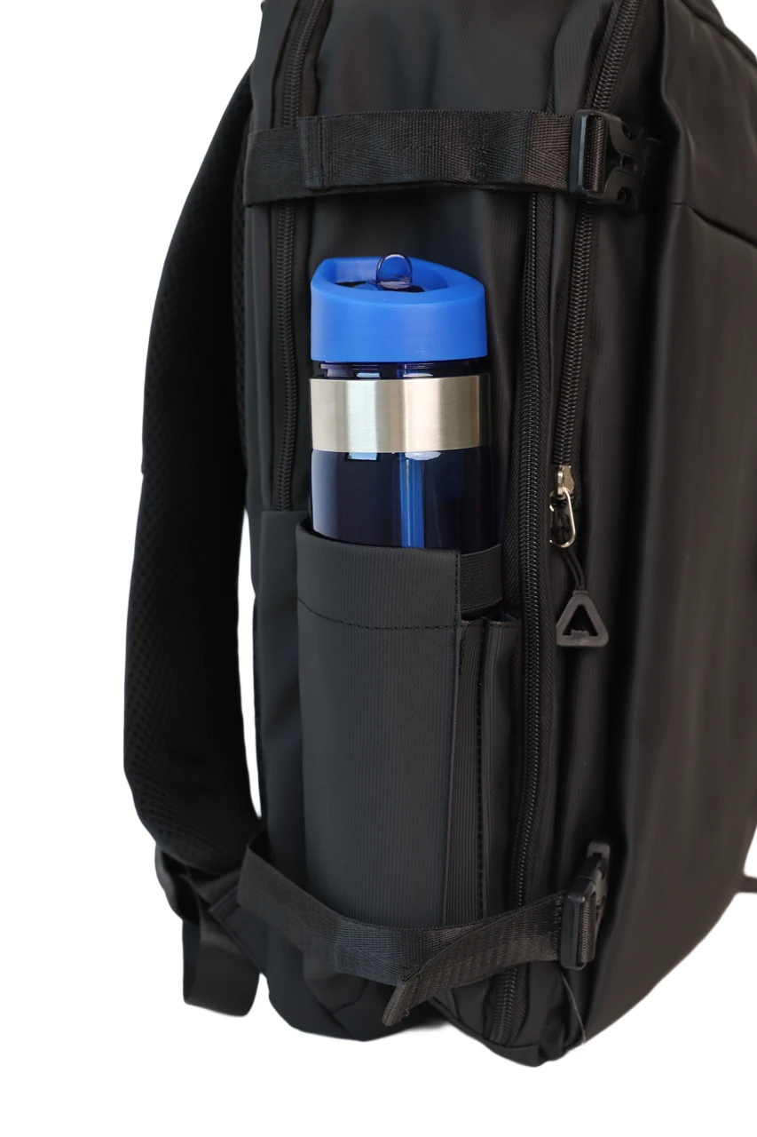 Непромокаема раница за лаптоп 17" с модерен дизайн и практична функционалност. Изработена от висококачествен полиестер, тя съчетава здравина и елегантен вид. Разполага с вграден USB порт за удобно зареждане в движение, страничен джоб за бутилка и четири отделения с цип за оптимална организация. Ергономичната конструкция гарантира комфорт при носене