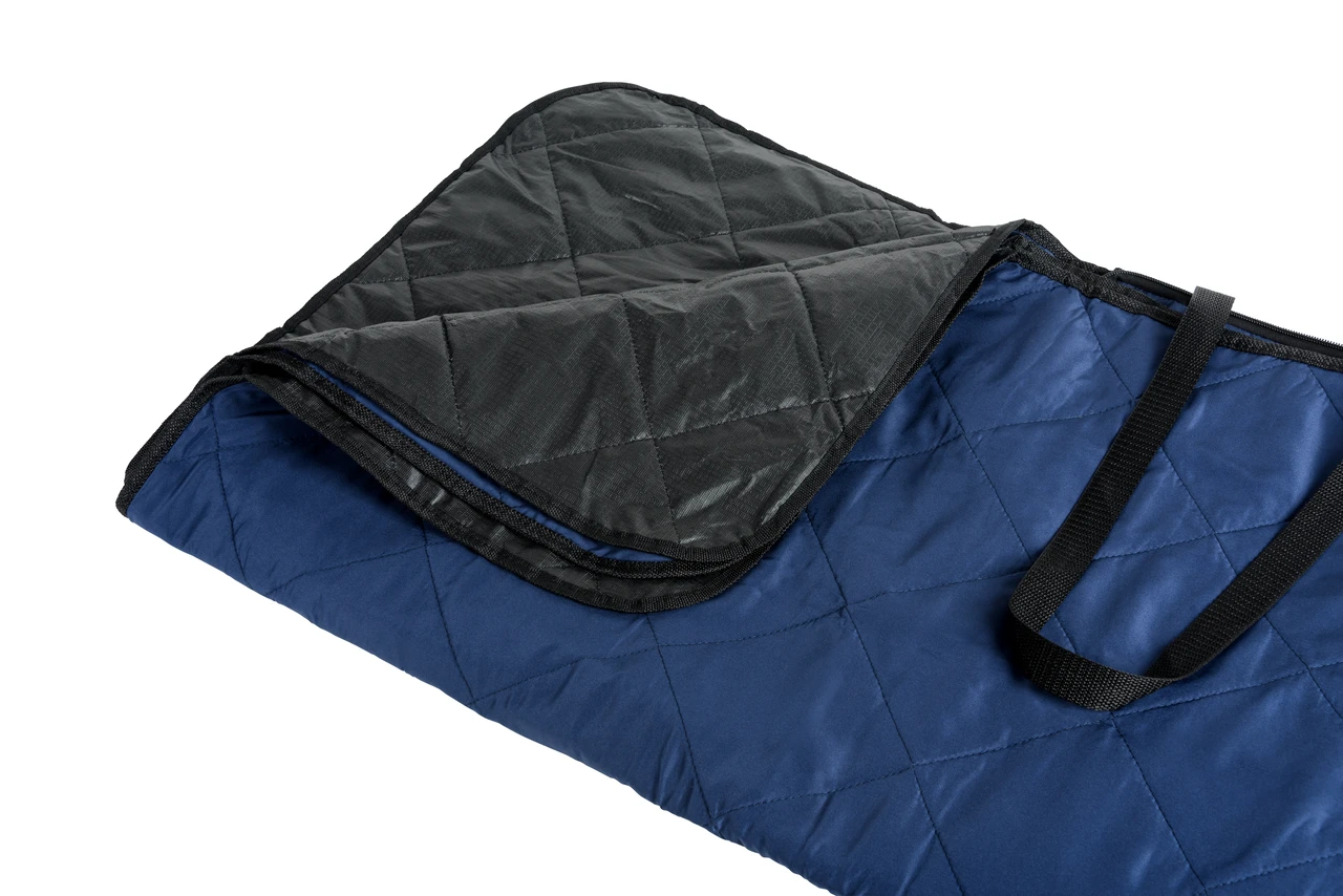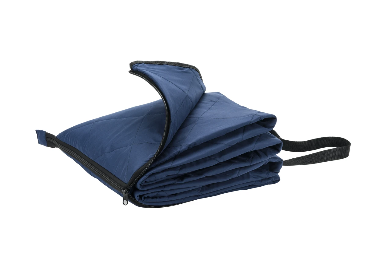 Практично сгъваемо одеяло за пикник, изработено от 100% рециклиран полиестер (rPET) с PEVA основа. При сгъване се превръща в удобна чанта за носене с преден джоб. Идеален избор за пикници и активности на открито.