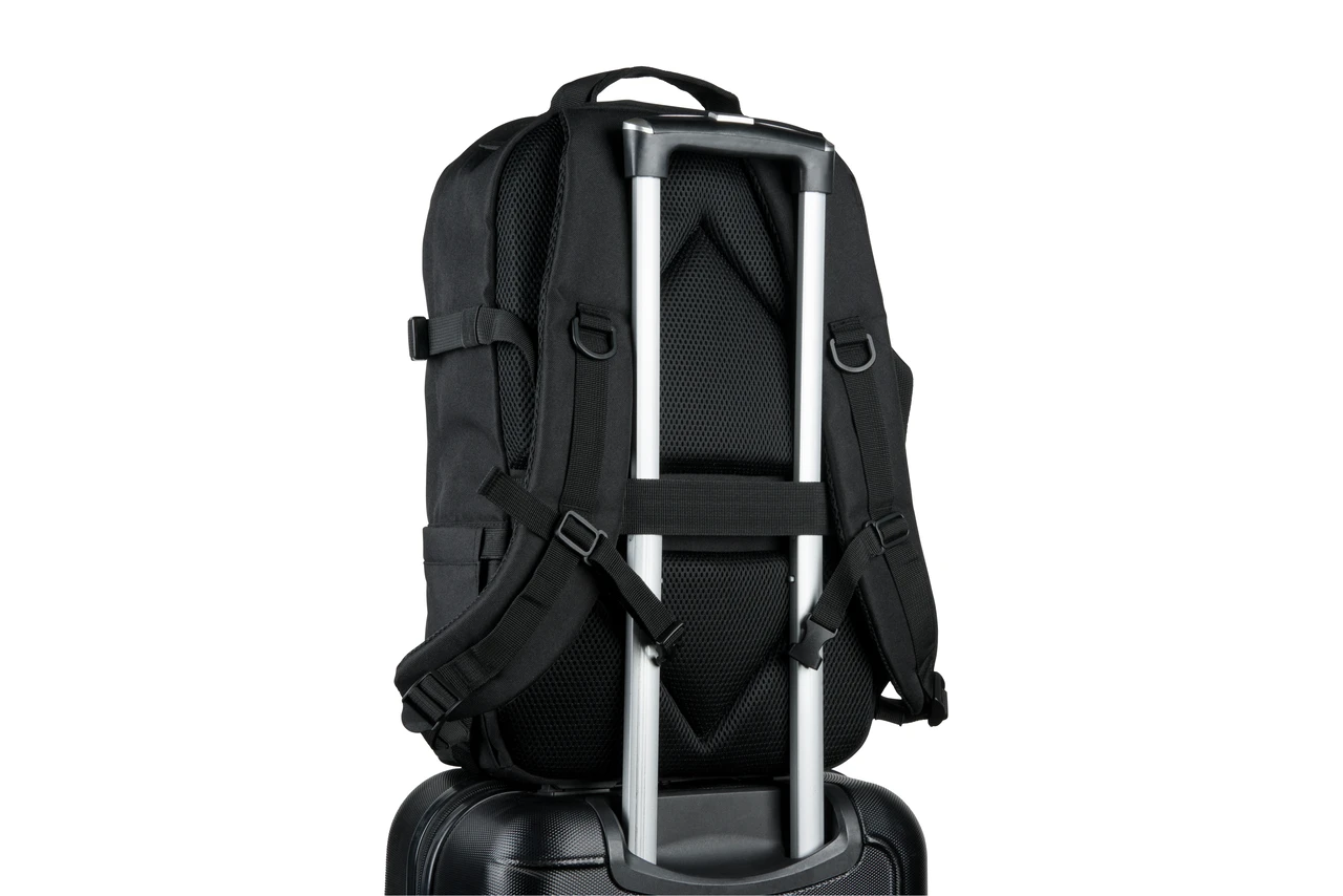 Универсална раница, подходяща за професионална употреба, спорт и туризъм. Изработена от издръжлив 600D рециклиран полиестер с 210D рециклирана подплата. Основно отделение с джоб за лаптоп до 17,3", множество организационни джобове, включително с цип. Включва също страничен джоб за бутилка вода, презрамка за закачане за куфар и възможност за пристягане.