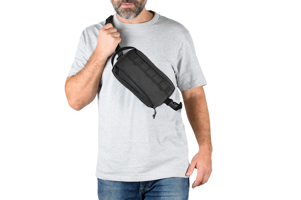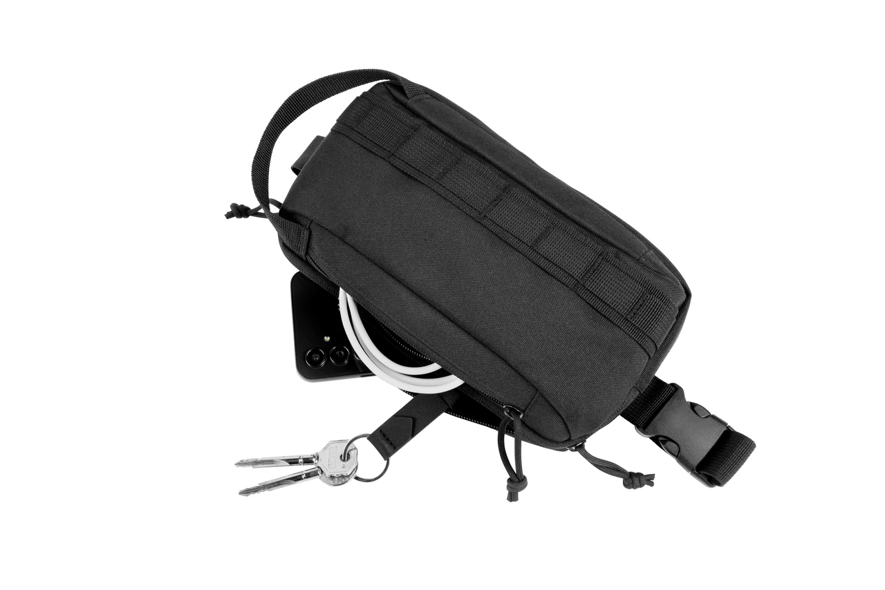 Практична чанта за кръст с екологичен дизайн, изработена от издръжлив 600D рециклиран полиестер с 210D рециклирана подплата. Идеална за ежедневна употреба. Просторно основно отделение, допълнителен преден джоб. Регулируема презрамка за носене на кръста или през рамо.