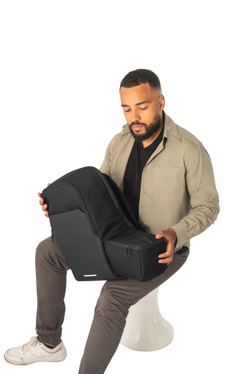 Иновативна комбинация от раница и термо чанта, които могат да се използват заедно или поотделно. Раницата е с вместимост от 20 L, и има отделение за лаптоп до 17,3". Включва предно отделение с подвижна преграда за термо чантата, преден джоб с цип, страничен джоб за бутилка, светлоотразителни детайли и презрамка за закачане за куфар. Термо чантата е с капацитет от 4,5 L и има PEVA изолация.