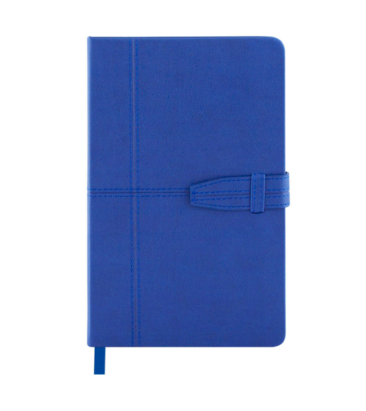 Тефтер A5 с ластик, разделител и място за химикалка, 120 листа с редове, цвят на хартията слонова кост, твърда корица.