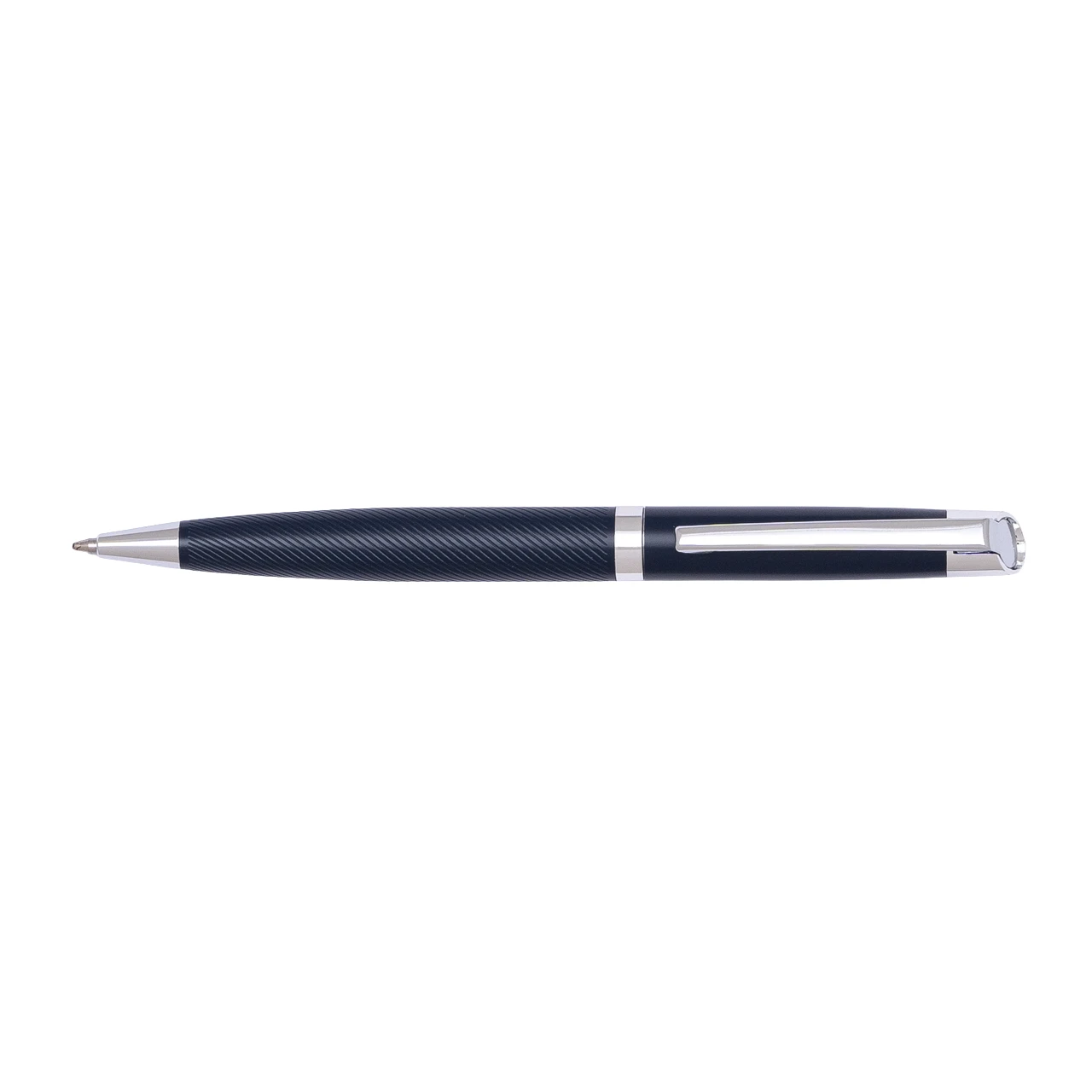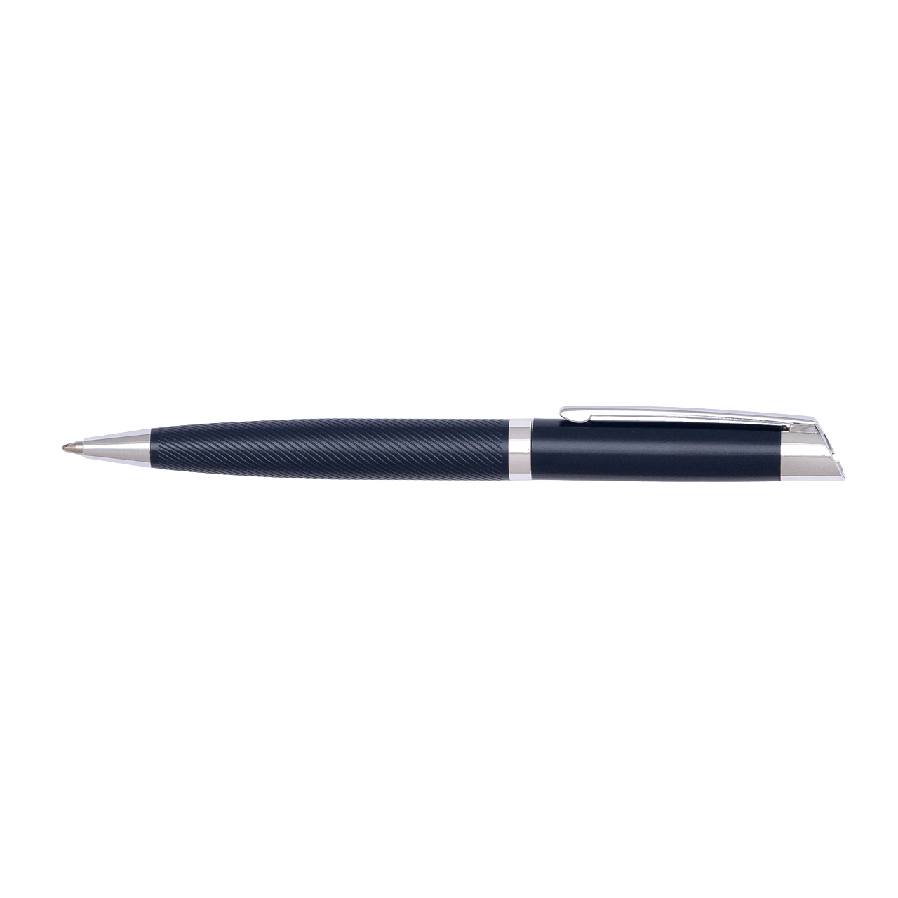 Тази елегантна химикалка е перфектна комбинация от модерен дизайн и практичност. Тя се отличава с гладко, матово черно тяло в горната част и фино набраздена долна част, което допринася за по-удобно захващане. Нейните металик акценти ѝ придават изискан и професионален вид. В черна подаръчна кутия.