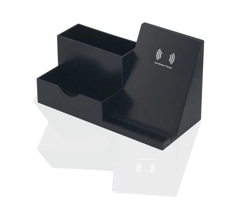 Поставка за бюро с часовник и химикалка.