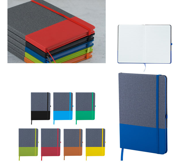 Тефтер A5 с ластик и разделител, 80 листа с редове, цвят на хартията слонова кост с цветен ръб, твърда корица. Материал: PU, хартия. Размер: 145х210х13 mm. Печатаемо поле: 80х30 mm Печат: тампонен, ситопечат, сухо преге.
