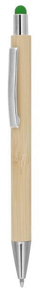 Еко химикалка със стилус, пълнител тип паркер. Материал: бамбук и метал. Размер на артикула: Ø11x142 mm. Печатаемо поле: 60х7 mm. Печат: тампонен, ситопечат, гравиране. Опаковка: 50 бр. в кутия/1000 бр. в кашон.