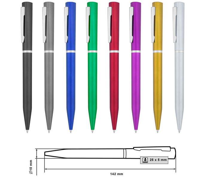Размер на артикула: Ø10х142 mm. Печатаемо поле: 25х5 mm. Печат: тампонен, ситопечат.